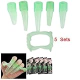 5 packs of Halloween makeup kit, each set including teeth and 5 fingernails, made of non-toxic soft plastic material.With fluorescent design, for creating a more horrible atmosphere.Features a slit on each fingernail, for size adjustment, one size fit most.Washable with water and soap.Greataccessories for witches or vampires in Halloween costume party.Note: please keep away from children under 3 years old.